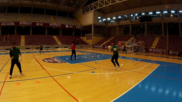 - Los porteros deberán hacer el circuito de la forma que les indiquemos (saltando, con apoyos entre conos, zig zag, etc.)